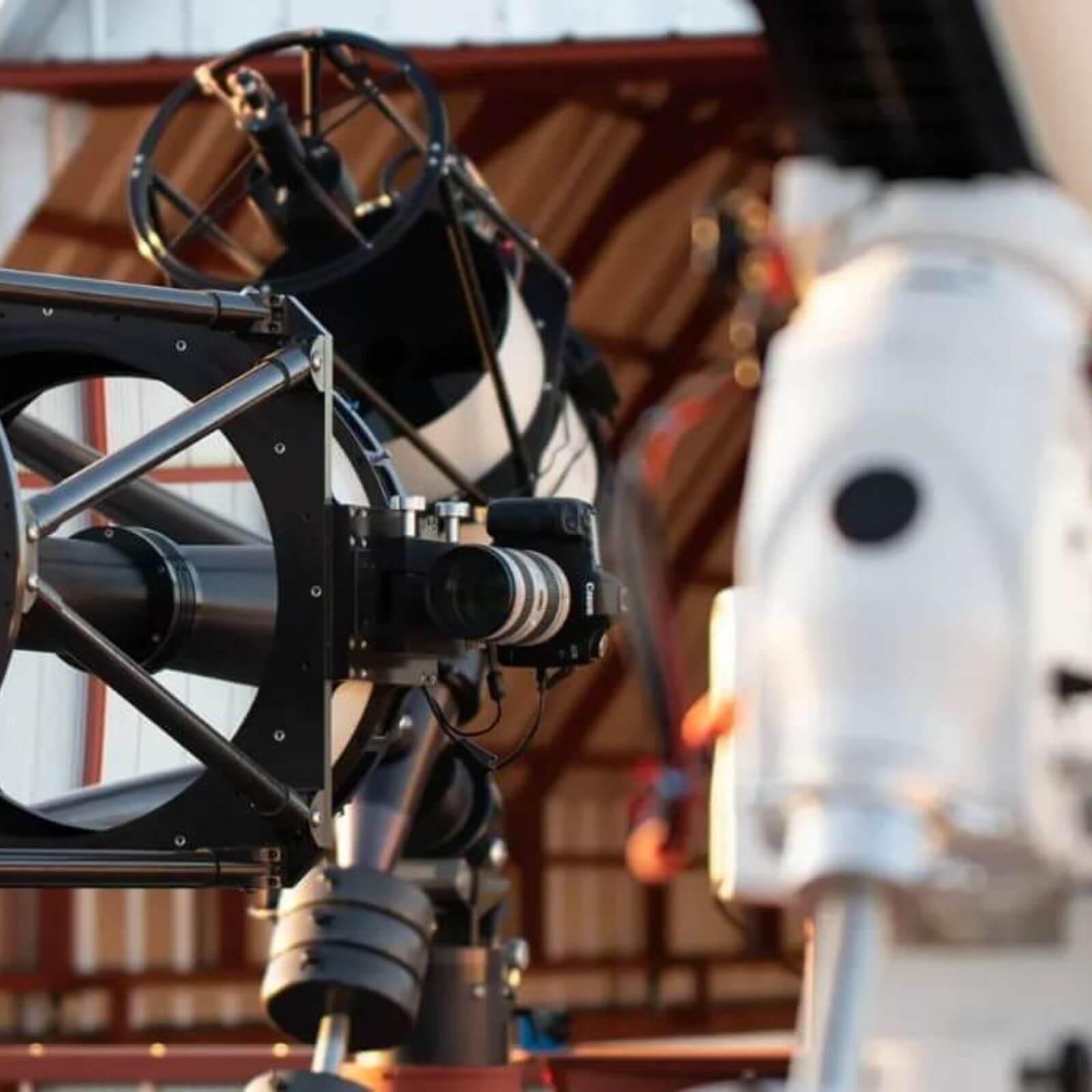 The telescope system consists of a main telescope with a 50 cm aperture and an f/6.8 focal ratio, using the "Corrected Dall-Kirkham" system by PlaneWave, and an auxiliary telescope with a 28 cm aperture and an f/2.2 focal ratio, using the "Rowe-Ackermann Schmidt Astrograph" (RASA) system by Celestron. Both telescopes are mounted on a PlaneWave L-500 Direct Drive azimuthal mount. The telescopes and the mount are high-end devices manufactured using the latest technology.
